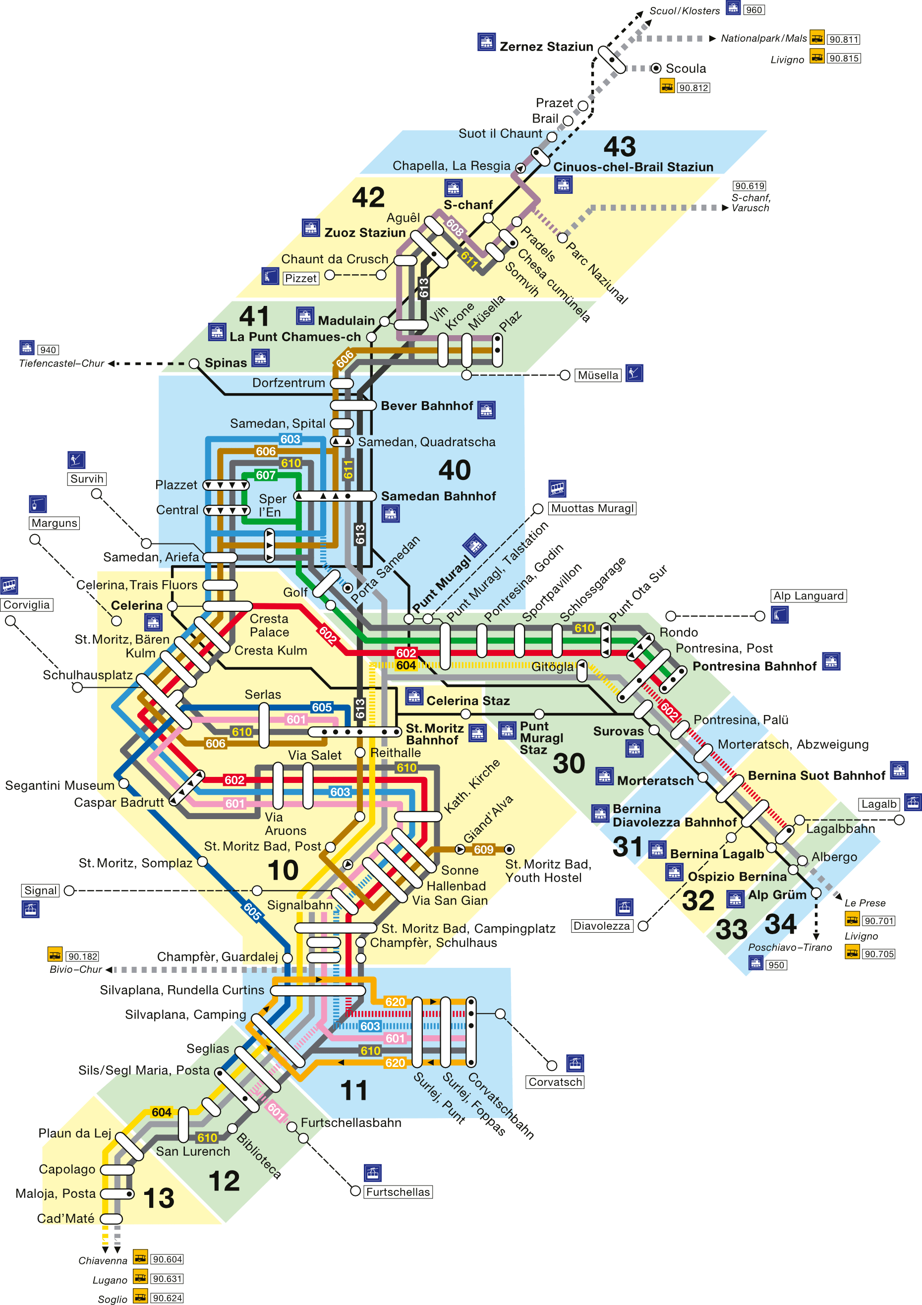 *Die Mehrtageskarte fürs Engadin ist für aufeinanderfolgende Tage in der Region zwischen Maloja – Cinuos-chel und Spinas-Alp Grüm gültig.